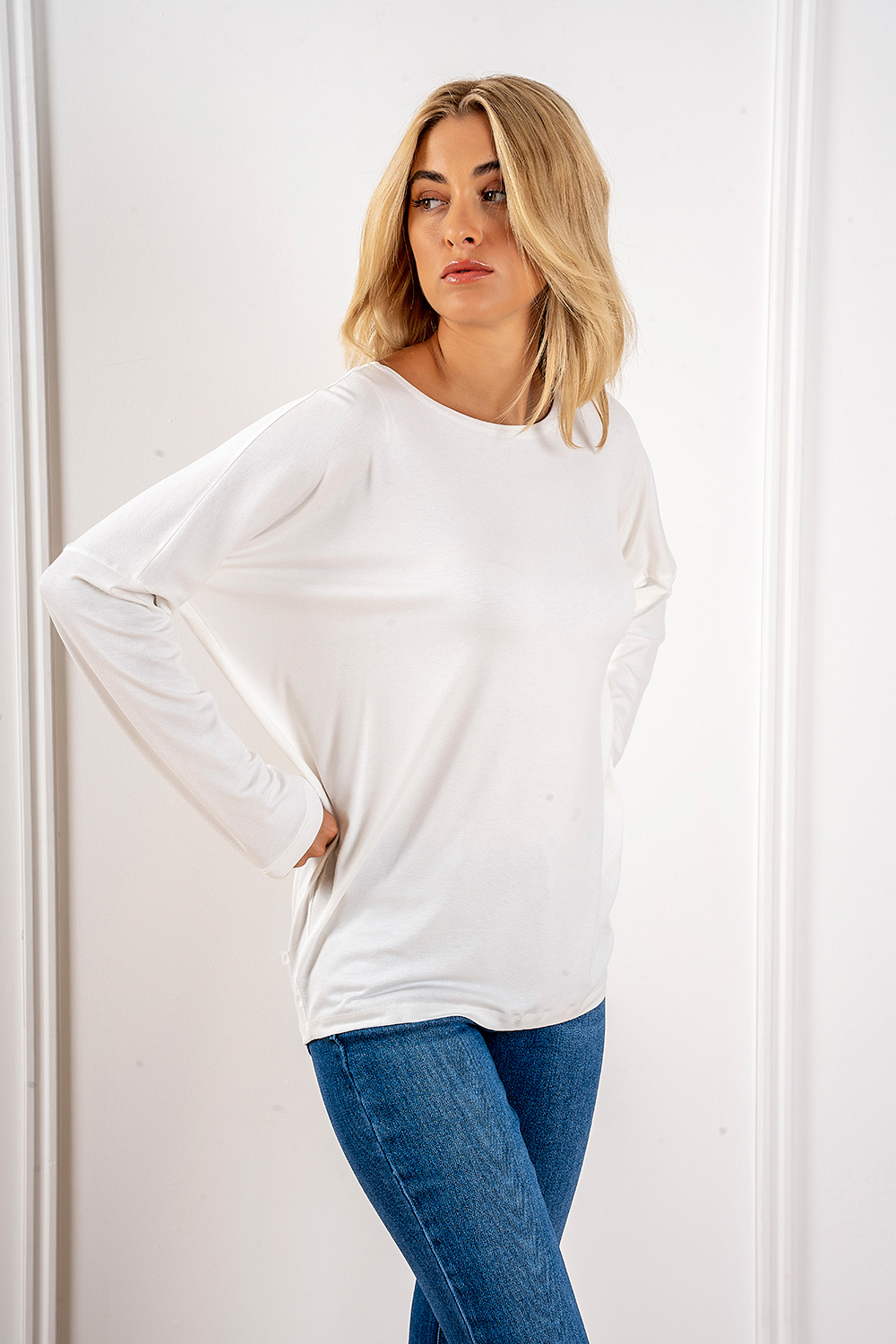 Μπλούζα νυχτερίδα με άνετη εφαρμογή.