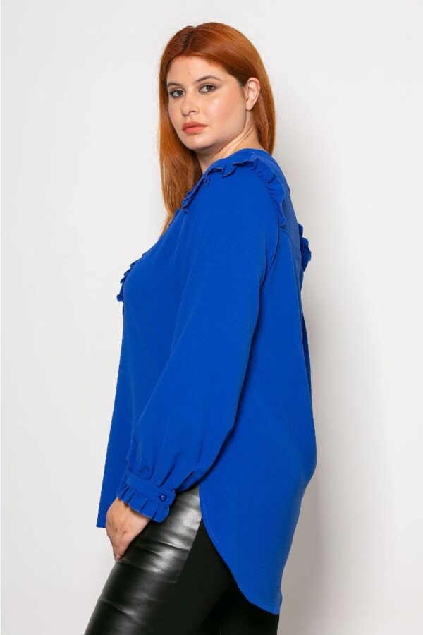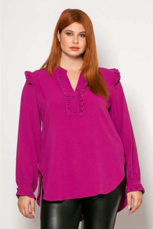 Στους ώμους έχει διακριτικό βολάν, μπλούζα ευκολοφόετη με άνετη γραμμή για όλες τις ώρες της ημέρας,